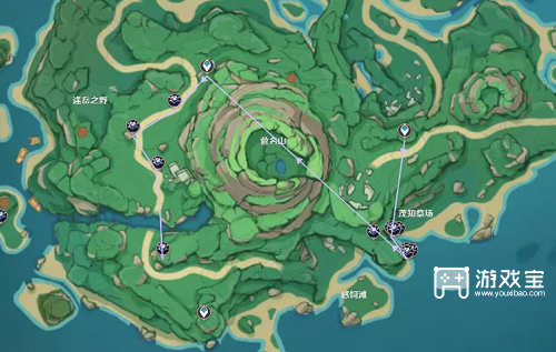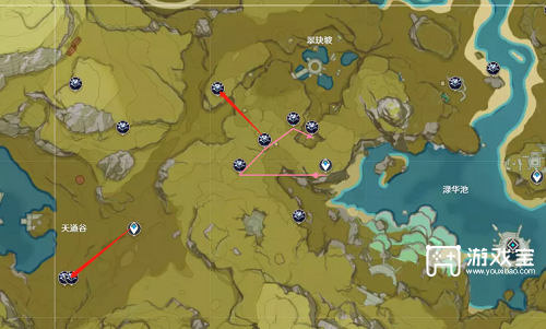 原神丘丘萨满是图览pubg地铁逃生透视莱依拉进阶的材料之一,游戏宝小编带来原神丘丘萨满分布图一览 ,原神很多玩家不知道怎么走更省时间 ,丘丘线路1:鹤观